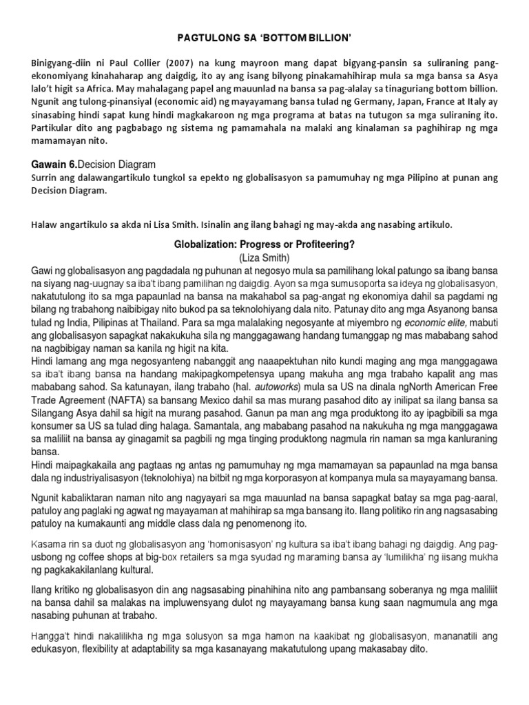 M0dyul 2 Mga Isyung Pang Ekonomiya Aralin 1 Glabalisasyon Konsepto
