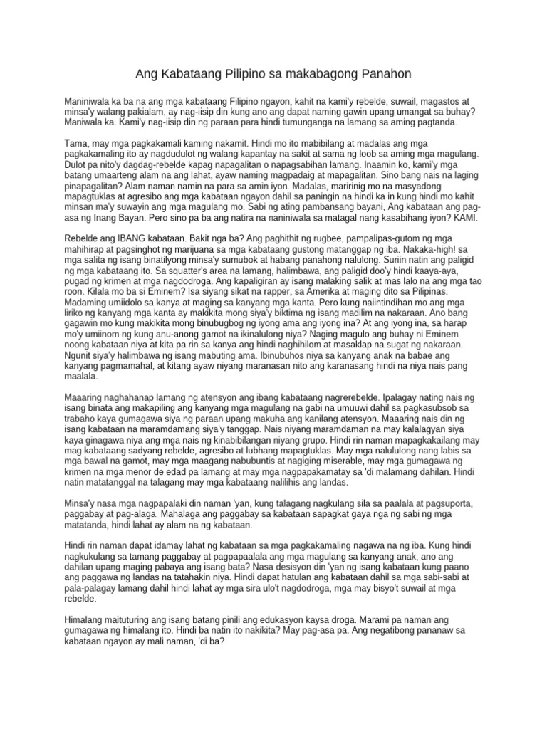 Ang Kabataang Pilipino Sa Makabagong Panahon