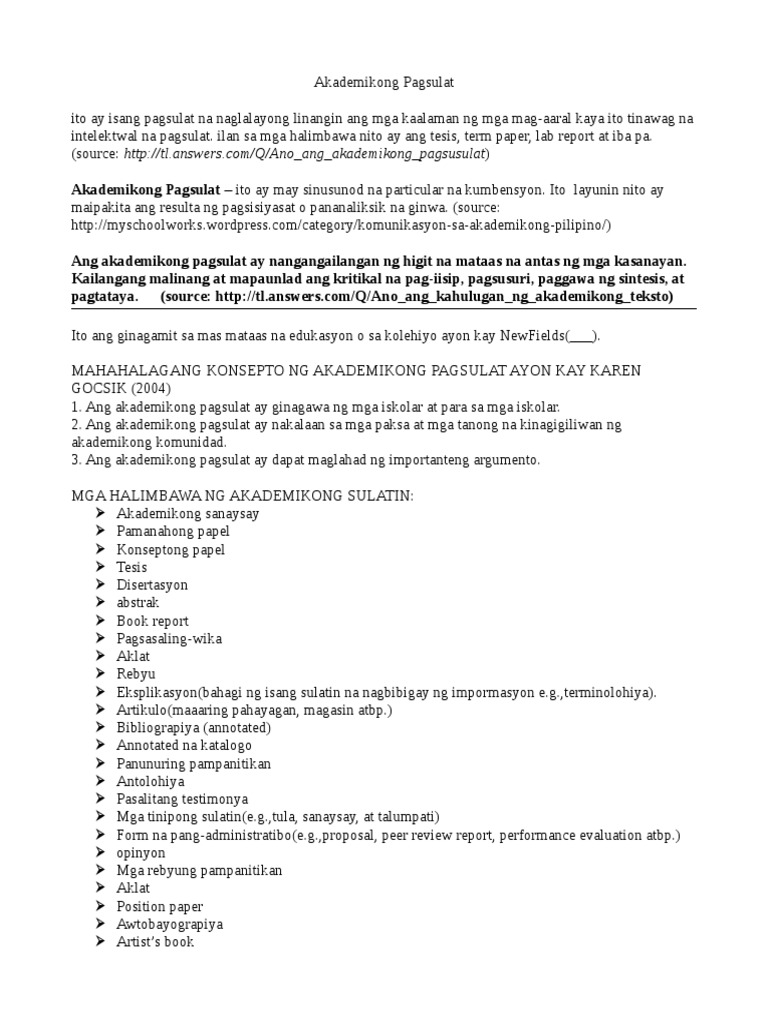 Kilalanin ang mga halimbawa ng akademikong sulatin upang magkaroon nang mas malinaw na konsepto at kaalaman ukol dito. Kadalasan ang mga sulating katulad nito ay ginagamit sa mundo ng akademya at siyensya. Copy this link to share with friends and colleagues.