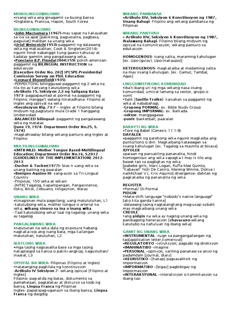 Dapat payabungin at payamanin pa salig sa umiiral na mga wika ng Pilipinas at sa iba pang wika at. Bilang pambansang wika Filipino ang sumisimbolo sa ating pambansang pagkakakilanlan Sumasalamin sa kalinangan at kultura Nagbabandila sa mundo na tayo ay hindi alipin Sumasagisag sa ating kalayaan Pambansang pagkakaisa at pagbubuklod Pamana ng mga. Sa artikulo xiv seksyon 6 at 8 nagsasaaad ang sumusunod 1973 seksyon 6 ang wikang pambansa ng pilipinas ay filipino na dapat PAYABUNGIN AT PAGYAYAMANIN sa salig sa umiral na wika sa pilipinas at sa iba pang mga wika.