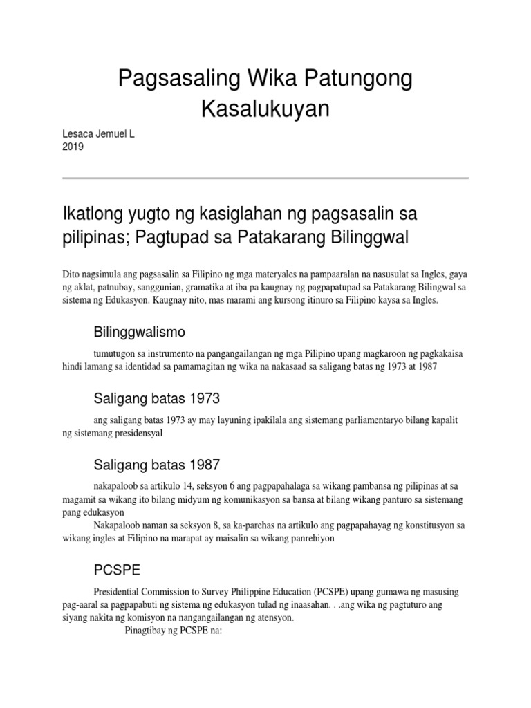 Below is a side-by-side presentation of Article Fourteen 14 of the 1987 Philippine Constitution in the Filipino language and in English. Kasunod ng Rebolusyong EDSA ng 1986 na nagpatalsik kay Ferdinand Marcos at kasunod ng kaniyang pasinaya ipinahayag ni Aquino ang. Pinatibay ang implementasyon ng Wikang Filipino C.