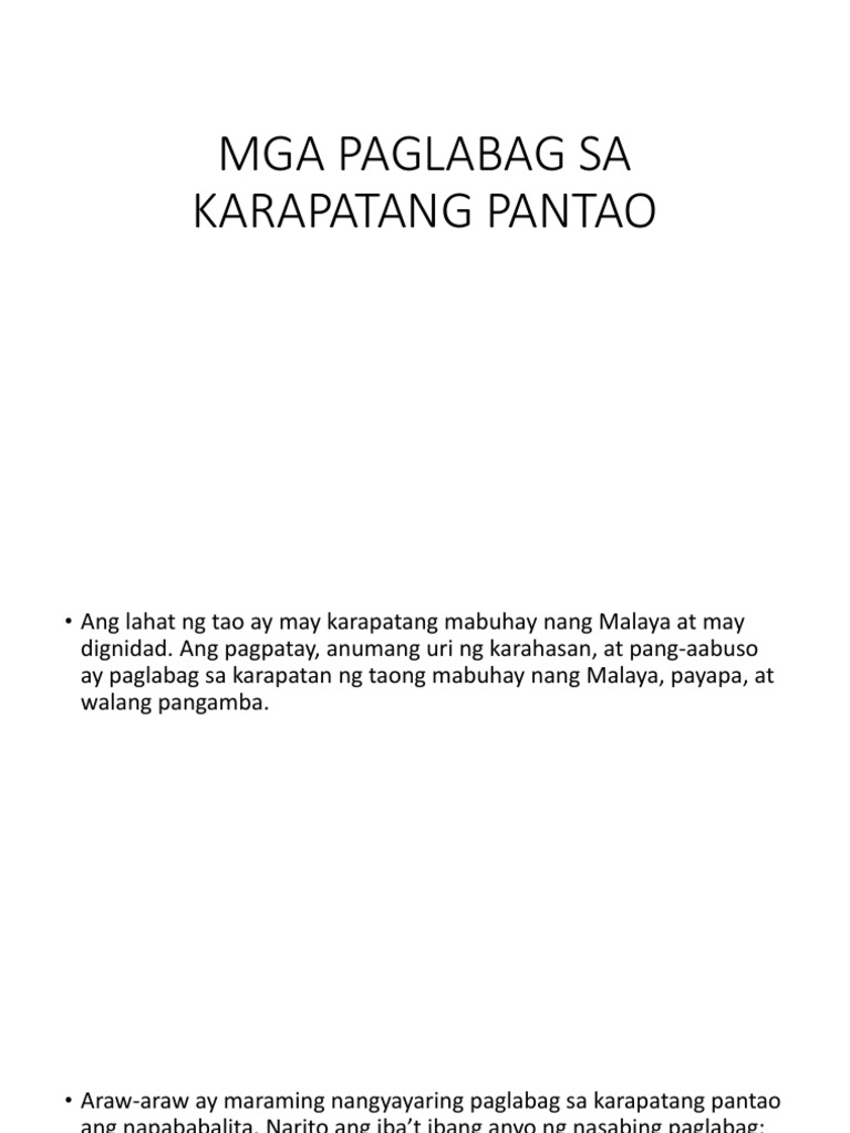 Iba U2019t Ibang Anyo Ng Paglabag Sa Karapatang Pantao Pptx Iba U2019t Ibang Anyo Ng Paglabag Sa Karapatang Pantao Ang Karapatang Pantao Ayon Sa United Course Hero