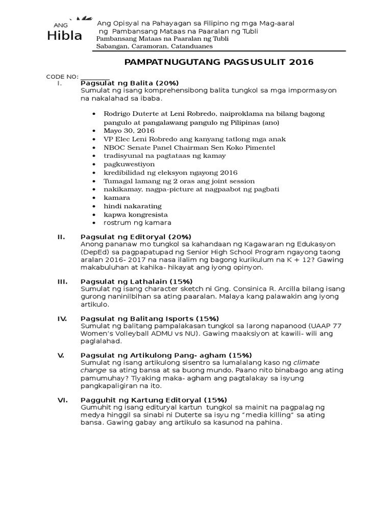 Pampatnugutang Pagsusulit 2016