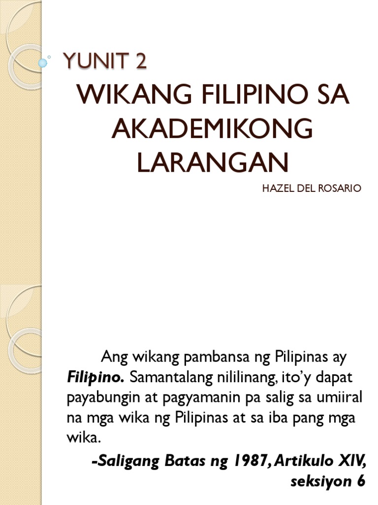 Saligang Batas ng Pilipinas or Konstitusyon ng Pilipinas Spanish. Front Cover Reprinted and exclusively distributed by National Book Store Philippines 93 pages. Samantalang nililinang ito ay dapat payabungin at pagyamanin pa salig sa umiiral na wika sa Pilipinas at sa iba pang mga wika.