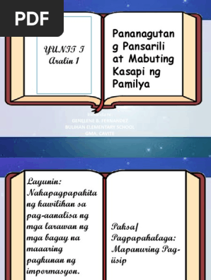 Pananagutan G Pansarili At Mabuting Kasapi Ng Pamilya Yunit I Aralin 1